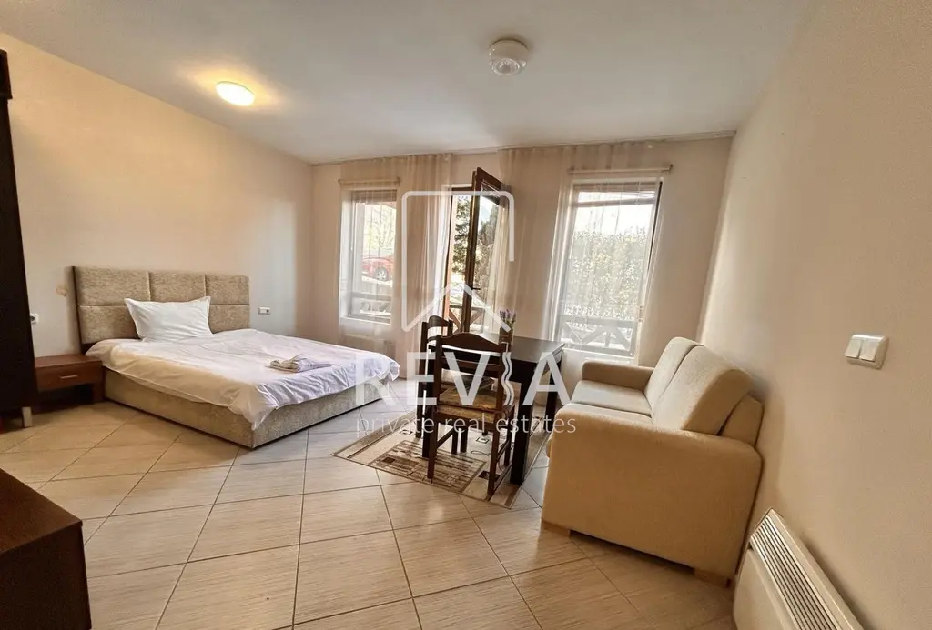 Агенция Ревиа предлага за продажба напълно обзаведено студио в луксозния затворен комплекс Green Life, разположен в тиха и зелена част на гр. Банско, само на минути от кабинковия лифт.