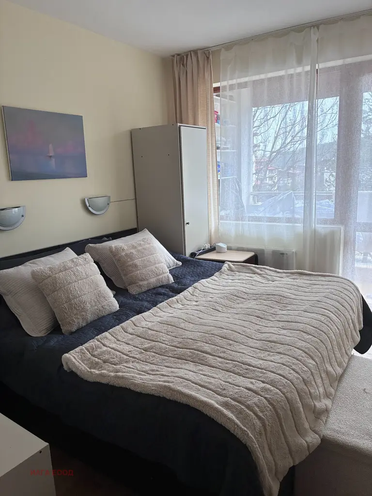 Даваме под НАЕМ собствен апартамент . гр Банско, комплекс 'Pine Trees', близо до ски писта , наем минимално е 14 дн., обзаведен, ТВ, Wi-Fi, 1 спалня, Кухненски блок, хладилник, ел.уреди,растегателен диван. пералня, балкон . Максимално брой на гости 3-4 ч.Идеално е за семество с 1-2 дете. Без домашни любимци. В това място за настаняване не могат да се провеждат момински или ергенски партита и други подобни празненства.Доп. плащане за електричество 8 евро/ден. При дългосрочен престой ще коментираме цена за престой и ток!!!!