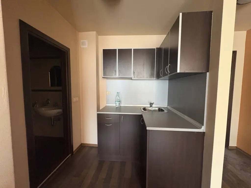Влиза се през антре. Кухнята е обзаведена сновигорни и долни кухненски шкафовеи абсорбатор. Холът е обзаведен с дивани холна маса.Има и трапезна маса за четири човека.