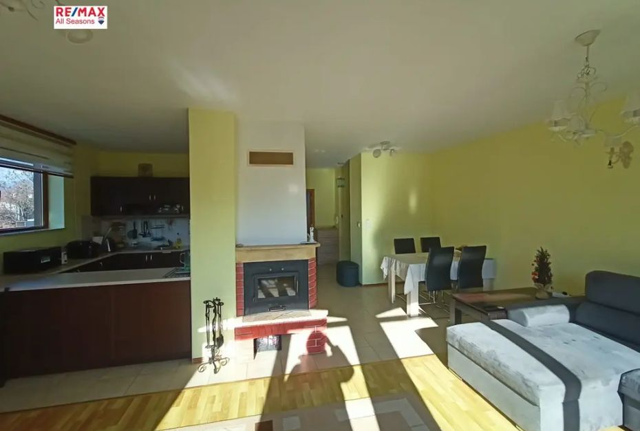 Дневна: Светла и просторна, оборудвана с масивна камина на дърва.