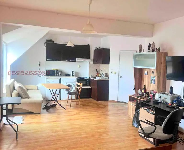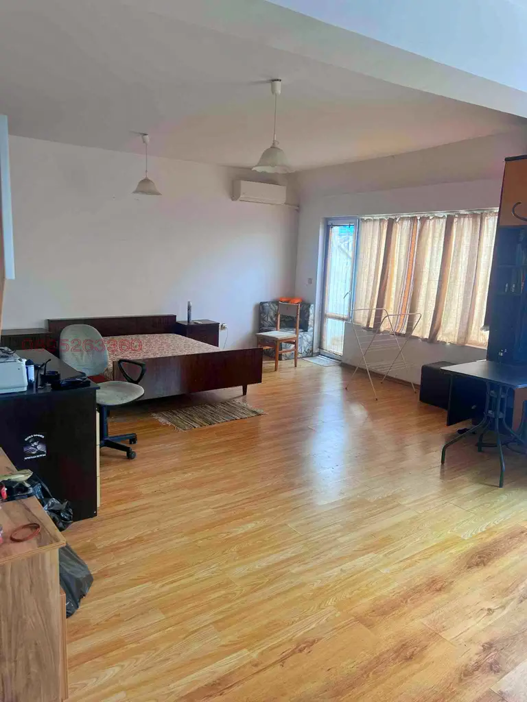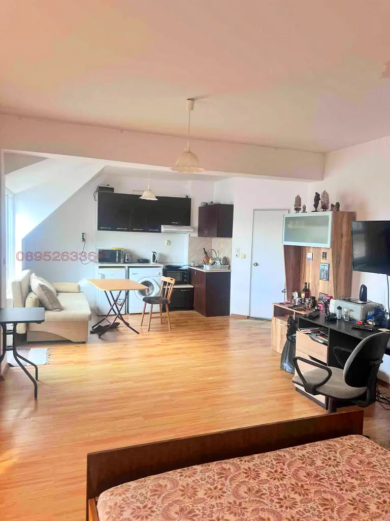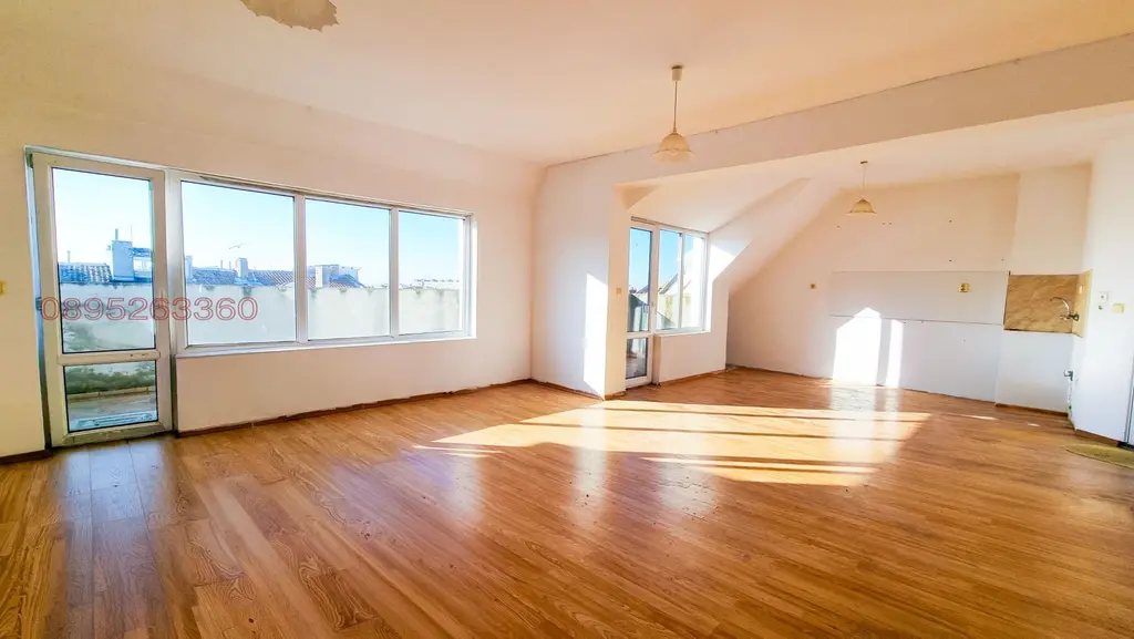 - Просторна всекидневна с възможност за обособяване на кухненски, трапезарен и спален кът