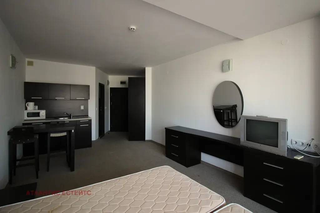 Предлагаме за продажба комфортно и просторно студио, разположено в комплекс Атлантис , само на метри от морския бряг и на около 150м. от южния плаж на кв. Сарафово.