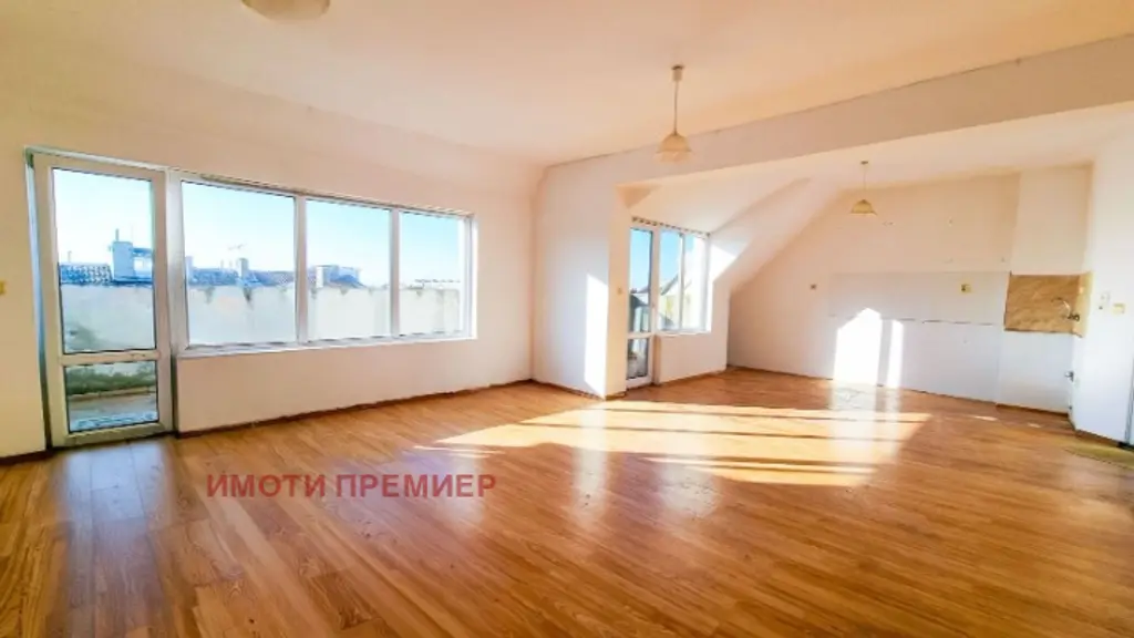 - Просторна всекидневна с възможност за обособяване на кухненски, трапезарен и спален кът