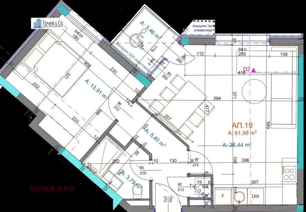 Квадратурите на имотите са между 52,83 кв.м и 308.09 кв.м. АПАРТАМЕНТ 19