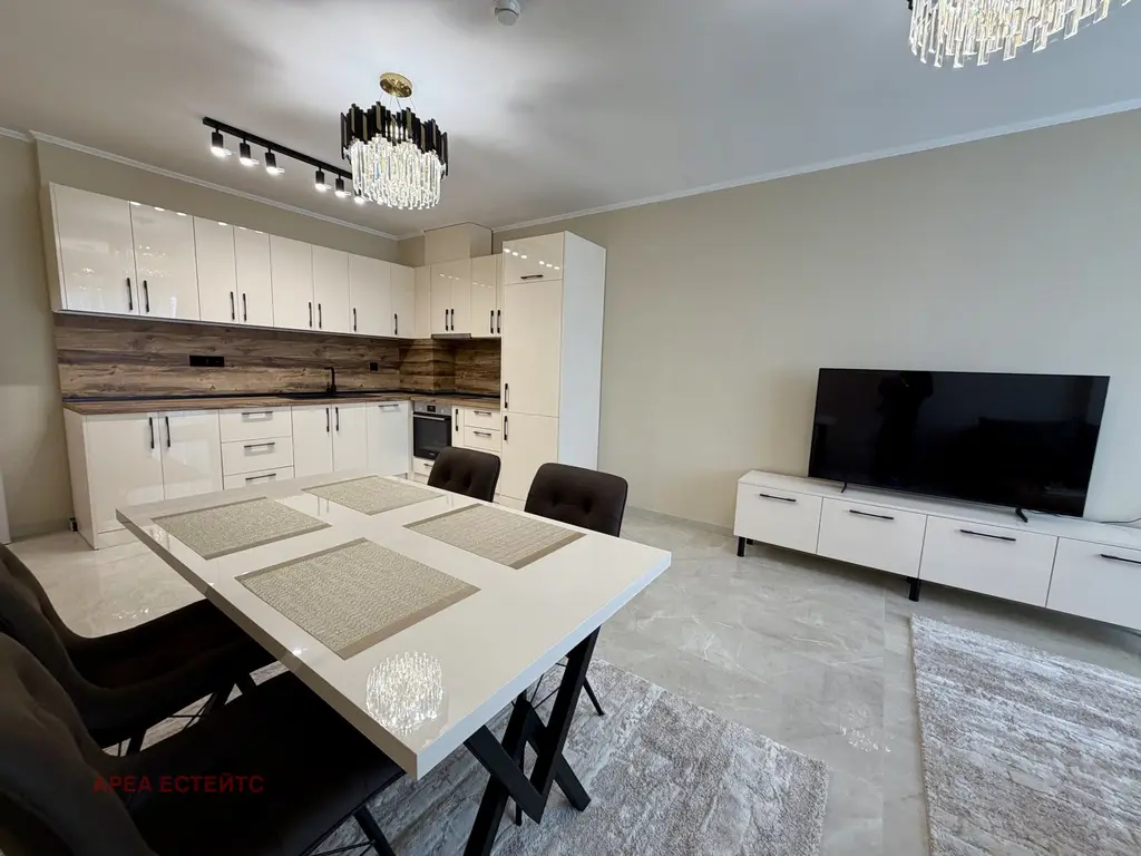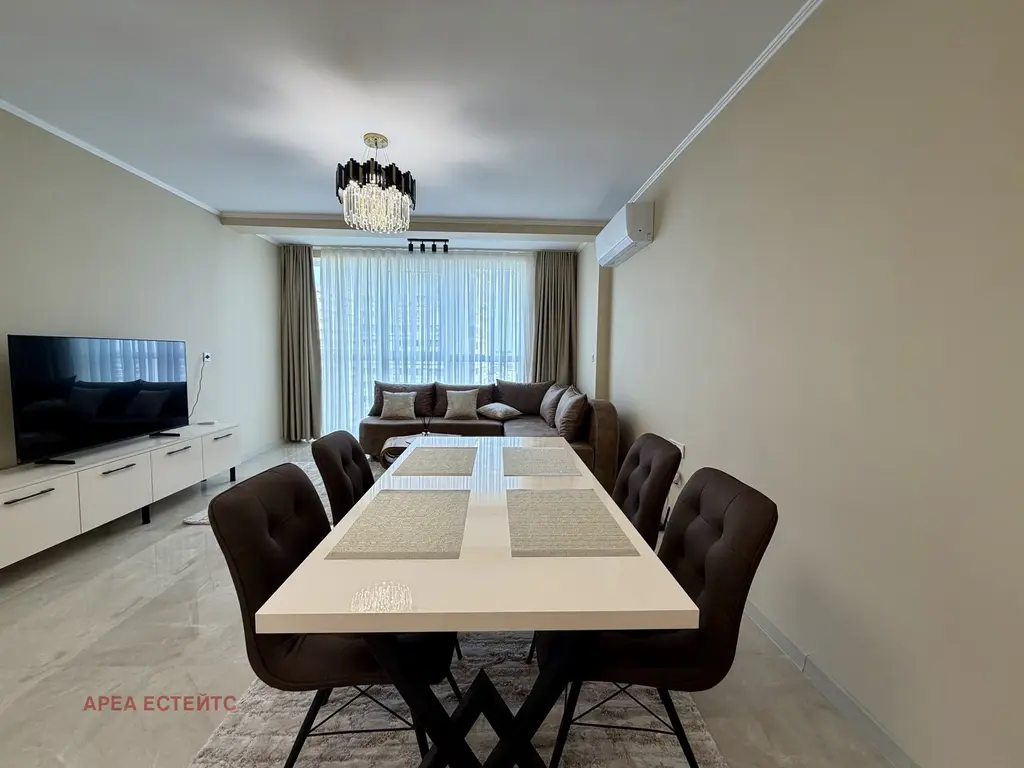 Жилището разполага с входно антре, кдневна с кухненски бокс, спалня, баня с WC и складово помещение. Възможно е закупуване на гараж в сградата. Светлите и просторни помещения предлагат панорамна морска гледка. Към апартамента с епредлага и избено помещение.