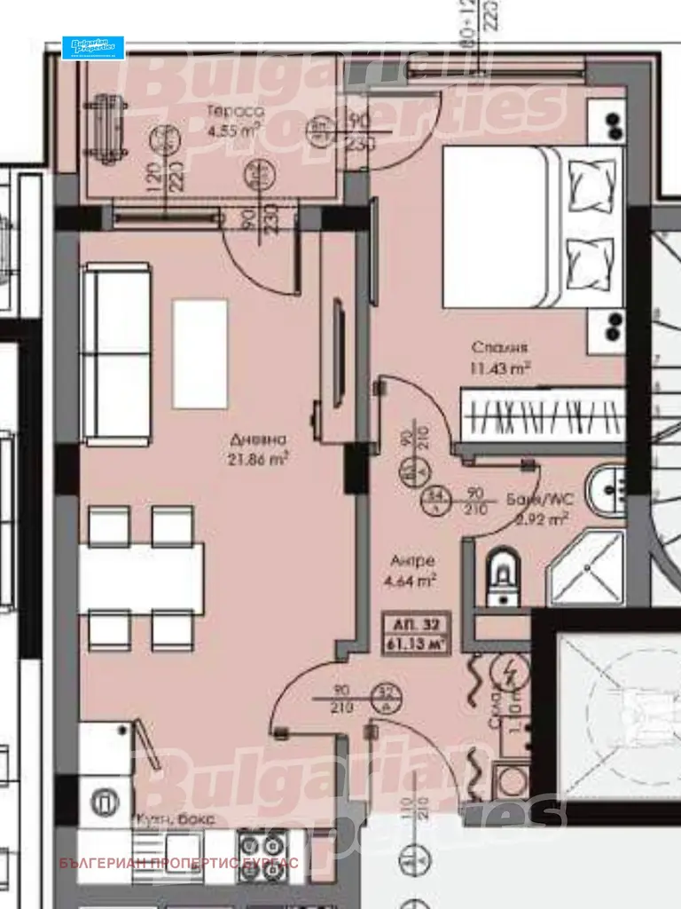 Площ: 61.18 кв.м