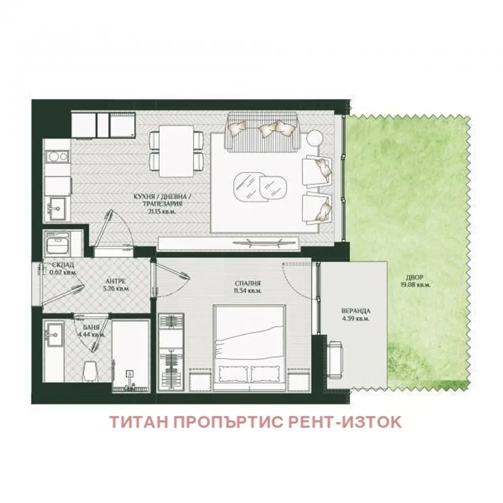 Агенция Титан Пропъртис има удоволствието да Ви предложи, Двустаен апартамент, ситуиран в новострояща се жилищна сграда, находяща се в един от най-бързо развиващите се квартали на града -кв. Хоризонт