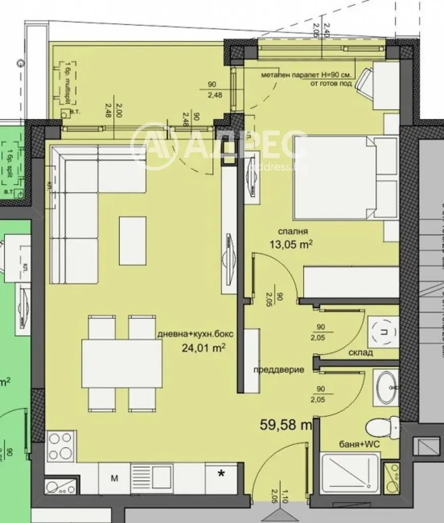 Простор и естествена светлина благодарение на тавани с височина от 2.90 м