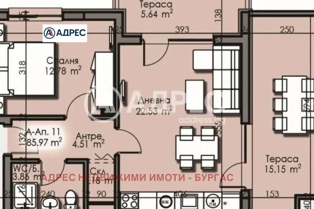 Адрес Недвижими имоти Ви предлага за продажба БЕЗ КОМИСИОННА ОТ КУПУВАЧА тристаен апартамент състоящ се от всекидневна, две спални, баня с тоалетна, отделно тоалетна, антре и тераса.