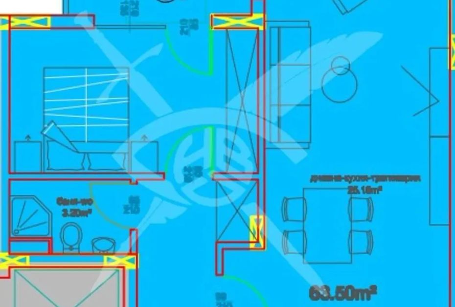 РАЗПРЕДЕЛЕНИЕ: Жилището разполага с площ 75,23 кв.м., състои се от хол с кухня, спалня и баня с тоалетна.