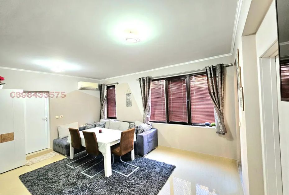 Предлаганият двустаен апартамент е разположен в квартал Сарафово, на кратко разстояние от морския бряг. Жилището е в сграда от 2017 г. с тухлено строителство и Акт 16, което гарантира завършеност и качество. Апартаментът е с площ 65 кв.м. и се намира на първи жилищен етаж, над партер, с източно изложение, което осигурява сутрешна светлина. Разпределението включва коридор, дневна с трапезария и кухненски бокс, спалня, баня с тоалетна и тераса. Продава се с наличното обзавеждане, което позволява нанасяне без допълнителни инвестиции. Има възможност за наемане на гараж, което е удобство при паркиране. Локацията предлага спокойствие и близост до морето, подходяща за целогодишно живеене или сезонно ползване.