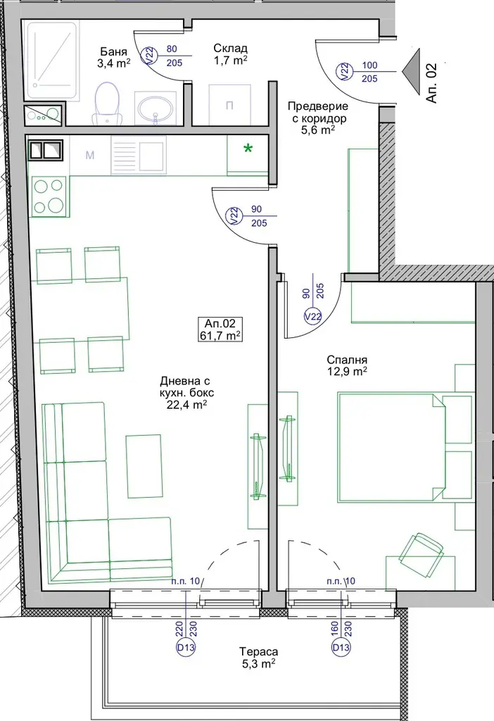 Брой балкони: 1