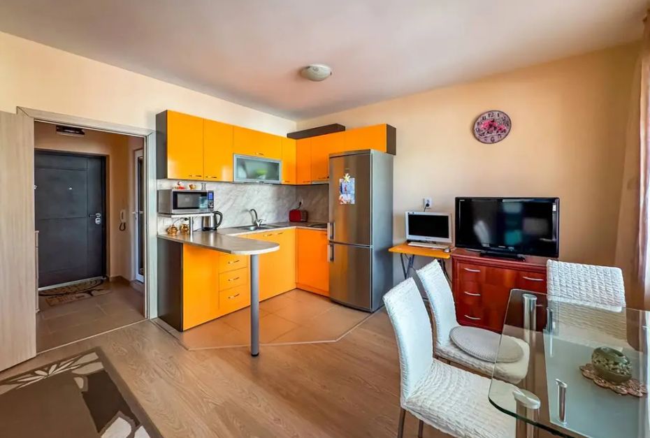 229127 Предлага се за покупка уютен двустаен апартамент в централната част на квартал Сарафово, град Бургас, само на 240 метра от морето и пясъчния плаж.