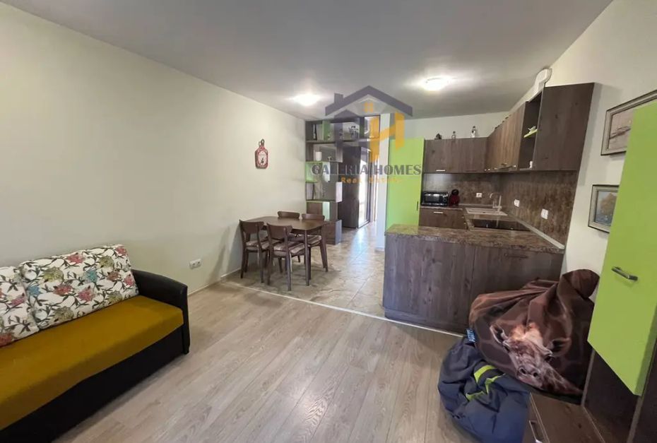 Имотът е разположен на партерен етаж с западно изложение и гледка към вътрешен озеленен двор и басейн.