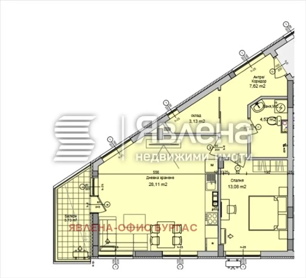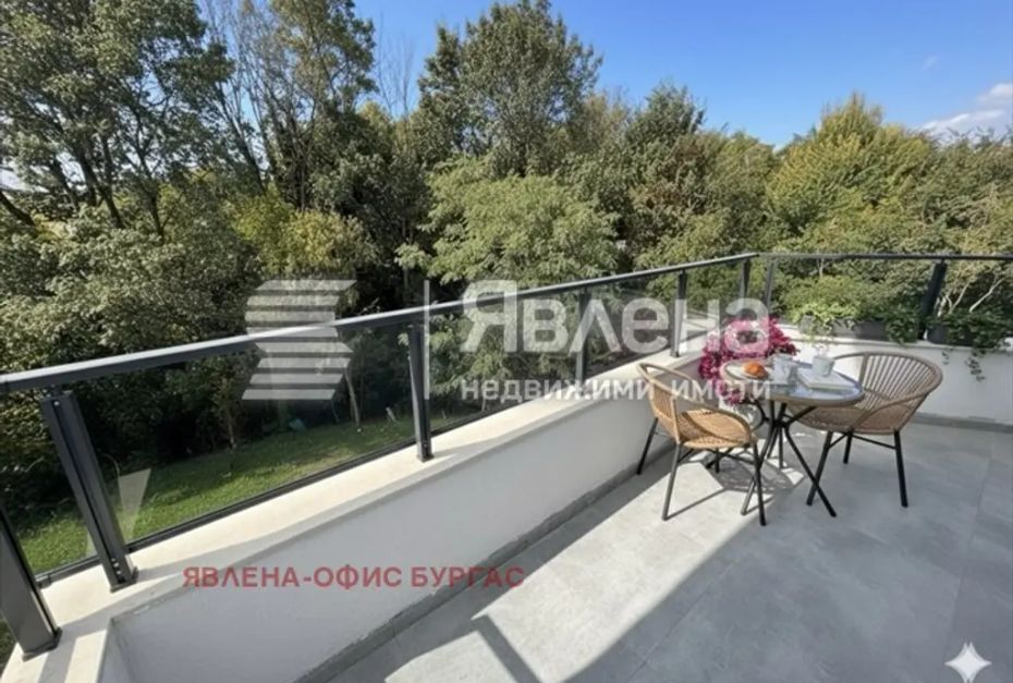 Предлаганият за продажба двустаен апартамент се намира на втори етаж в малка жилищна сграда с асансьор и общо 20 апартамента. Имотът е ъглов, с южно, западно и северозападно изложение, което осигурява добра естествена светлина и гледка към зелен парк. Разпределението включва входно антре, голяма дневна с кухненски кът, спалня, балкон, баня с тоалетна и склад-дрешник. Общата площ е 89 кв.м, като жилищната площ е 73 кв.м, допълнена от 16 кв.м общи части. Сградата е разположена на около 300 метра от плажа, в тих район с нова инфраструктура, улично осветление и парк с детски кът. Центърът на Сарафово и основни удобства като автобусна спирка и супермаркет са на пешеходно разстояние. Апартаментът се предлага в степен на завършеност 'по БДС', което позволява индивидуално довършване. В двора има голям паркинг за 20 автомобила и велостоянка. Последно налично паркомясто се предлага допълнително.