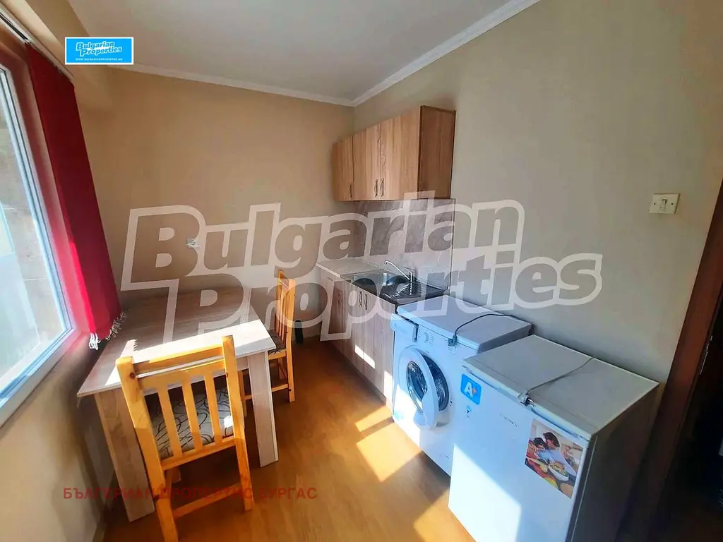 Имотът се предлага със следната степен на завършеност: PVC дограма, блиндирана входна врата, вътрешна изолация, подове с ламиниран паркет и стени - латекс. По отношение на мебели и оборудване налични са: вградена кухня, климатик, пералня и хладилник, както и останалото обзавеждане и оборудване от снимките. Западното изложение на апартамента позволява на естествената светлина да изпълва пространството през деня, създавайки топла и привлекателна атмосфера.