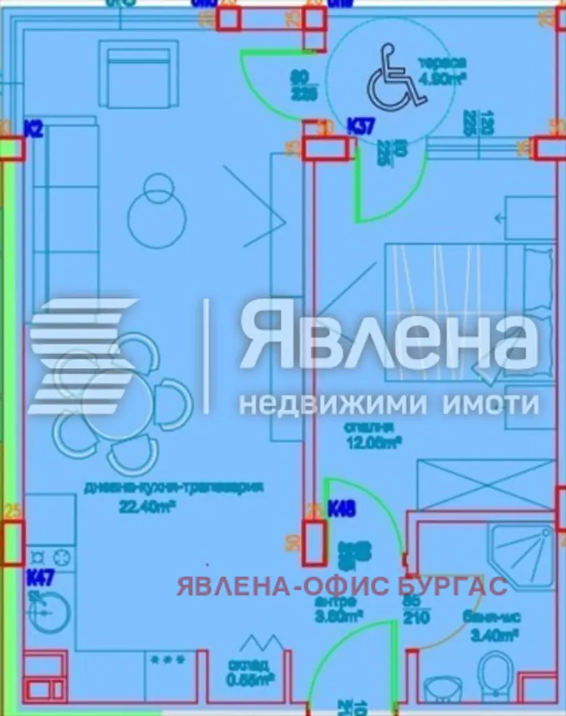 Предлагаме за продажба двустаен апартамент в нова, съвременна жилищна сграда, разположена на изключително комуникативно място в един от най-предпочитаните райони на гр. Бургас к-с Славейков.