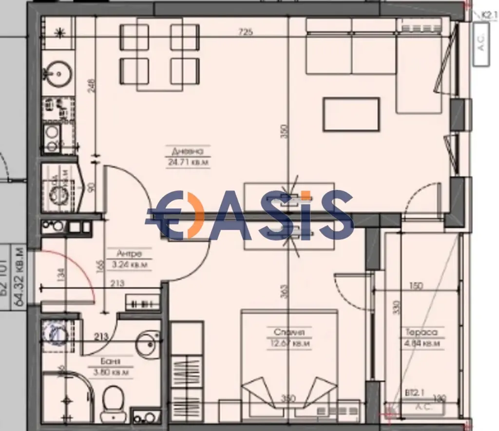 Обща площ: 65 кв. м.
