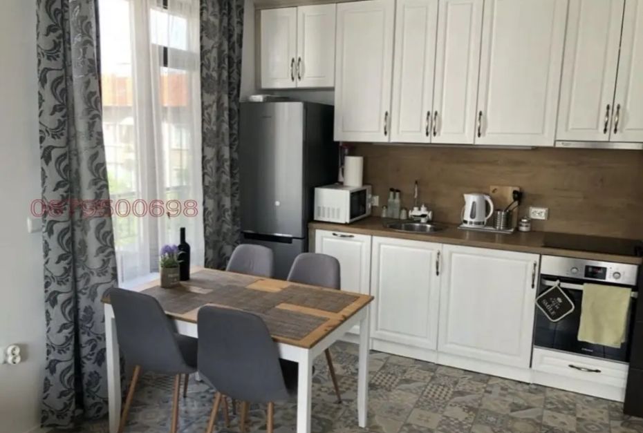 Двустаен апартамент в сърцето на град Бургас. Само на 10 минути пеша от плажа и в сърцето на центъра на града (близо до Съда). Sunny Shore Burgas е апартамент с оценка 9,5 в букинг с целогодишно отдаване под наем на нощувки с много висока доходност(https://www.booking.com/hotel/bg/sunny-shore-burgas-apartment.bg.html?aid=356980&label=gog235jc-1FCAsoF0Icc3Vubnktc2hvcmUtYnVyZ2FzLWFwYXJ0bWVudEgDWANoF4gBAZgBA7gBB8gBDdgBAegBAfgBA4gCAagCA7gCzs-4wwbAAgHSAiRlNGQwM2FkYS0yOTc0LTQ3ODktOThjNC0wMzIyMmRmNjY5YTLYAgXgAgE&sid=44c95beeeac364bc537135c979cc4dbb&dest_id=-832673&dest_type=city&dist=0&group_adults=2&group_children=0&hapos=1&hpos=1&no_rooms=1&req_adults=2&req_children=0&room1=A,A&sb_price_type=total&sr_order=popularity&srepoch=1752049623&srpvid=ae3d3b67fb1c0012&type=total&ucfs=1&). Той е оборудван с климатици, пералня, сушилня, ютия, хладилник, печка, интернет и тв.). Апартаментът разполага с една голяма спалня, две тераси, баня с тоалетна и хол с кухненски бокс и мазе. Сградата е построена 2018 г. и е в перфектно състояние с много поддържани общи части и само по 2 апартамента на етаж. Най-подходящ е за семейство или група до 4 души. Разполага с много гардероби и шкафове за съхранение на багаж и дрехи.