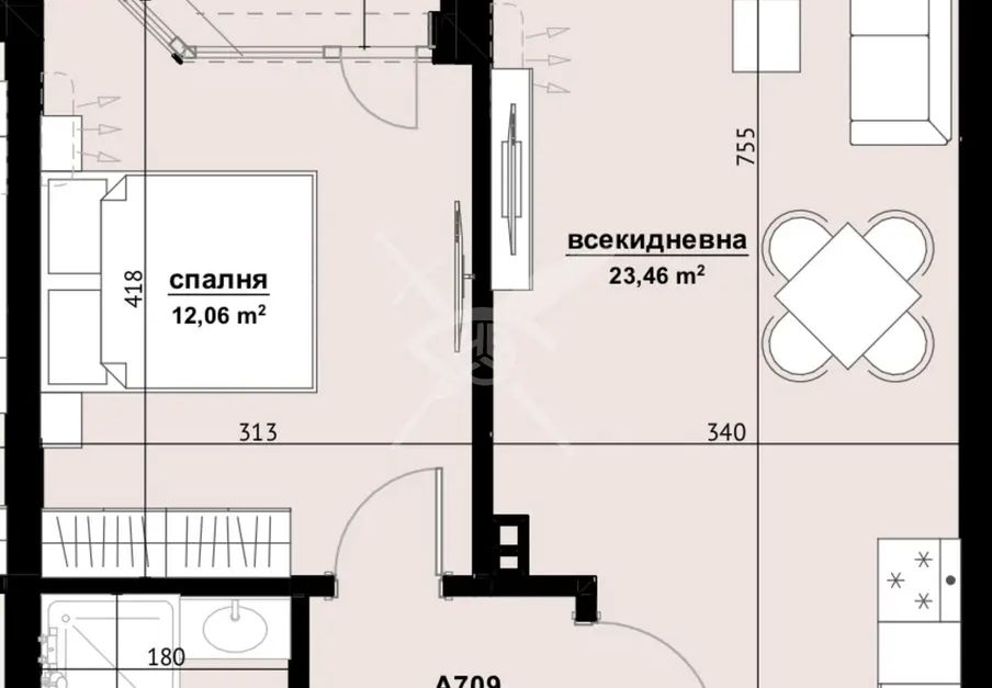 РАЗПРЕДЕЛЕНИЕ: Жилището разполага с площ 64,08 кв.м., състои се от хол с кухня, спалня и баня с тоалетна.
