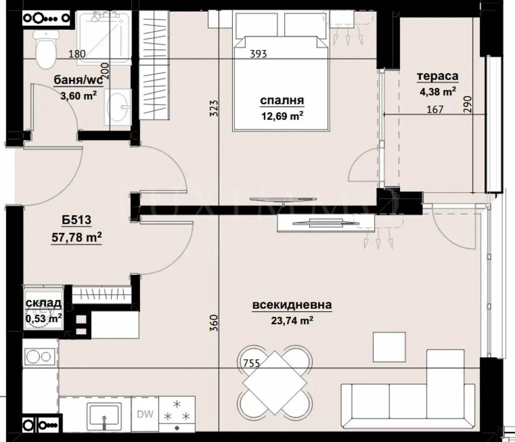 Представяме за продажба двустаен апартамент, в нова девететажна сграда на иновативния жилищен комплекс, до Mall Grand Plaza в кв. 'Хоризонт', Бургас.