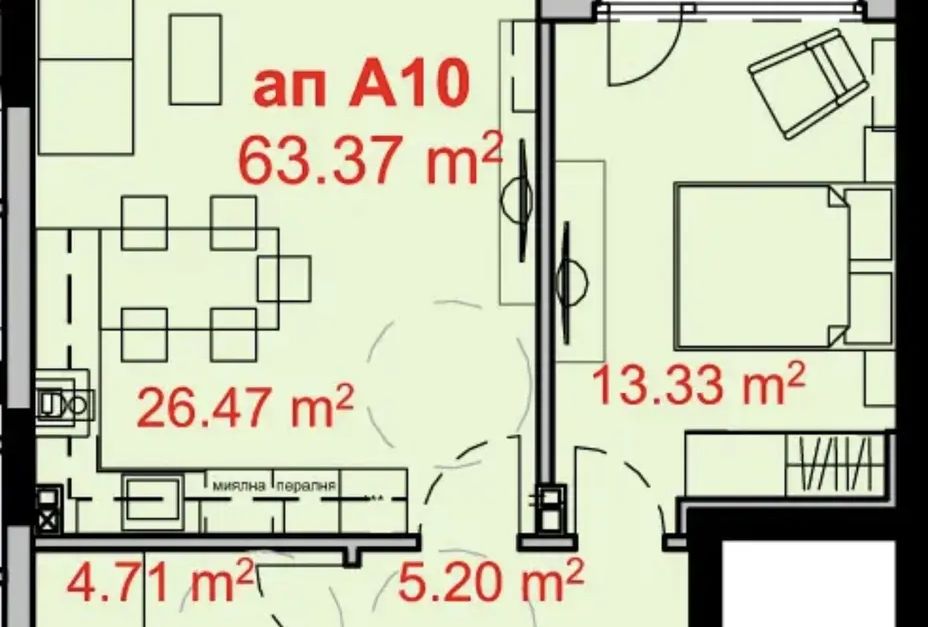 - спалня и всекидневна с кухня, от която се излиза на тераса.