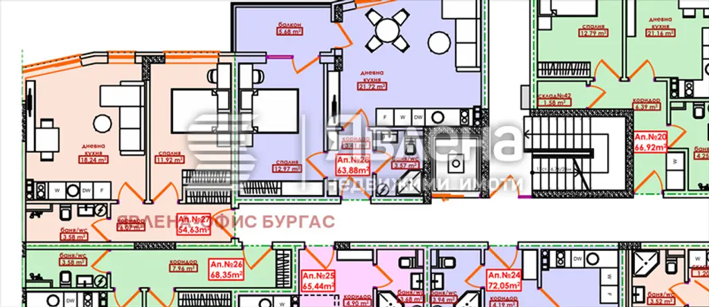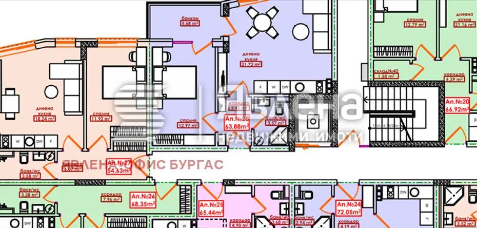 Агенция Явлена продава двустаен апартамент Ново строителство в Меден рудник Зона В. Апартамент Б27 е разположен на трети етаж на сградата и има следното разпределение: антре, всекидневна с кухненска част, една спалня и баня с тоалетна. Чиста площ 46.79 кв.м., 6.50 кв.м. общи части и складово помещение 1.65 кв.м. На схемата е в оранжев цвят. Този имот е част от Жилищен комплекс BLACK HILL 2 модерен, уютен и удобен. BLACK HILL 2 има лесна, удобна и комуникативна локация на ул. Кооператор , над JYSK и в непосредствена близост до жилищен блок 91, в един от най-перспективните и динамично развиващи се райони на гр. Бургас ж.к. Меден рудник . Разпростира се на надземна и подземна площ от 8 000 кв.м РЗП, с изпълнение от първокачествени материали. Сградата е разделена на два входа и включва сутерен, партер и шест жилищни етажа. На шестте жилищни етажа са проектирани 91 апартамента с включени мазета към тях. BLACK HILL 2 предлага подземен паркинг с 46 паркоместа, партер с 26 гаража и двор с 19 паркоместа. В целия проект е наблегнато на минимален процент общи части, осигурявайки максимален комфорт за обитателите. Старт на проекта - януари 2026. Завършване: януари 2028. Гъвкави схеми на плащане. авършване: януари 2028. Гъвкави схеми на плащане. В същата сграда продаваме още ателиета, едностайни апартаменти, други двустайни и тристайни апартаменти, както и гаражи, и паркоместа. За повече информация и огледи: брокер Даниела Йорданова. ID164091 (yavlenaCOM/164091).