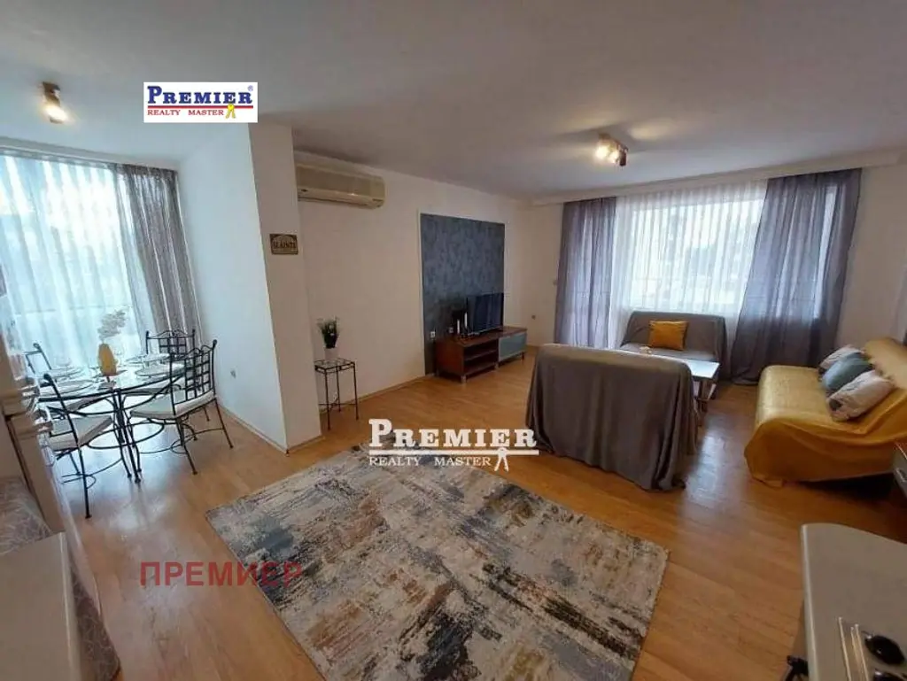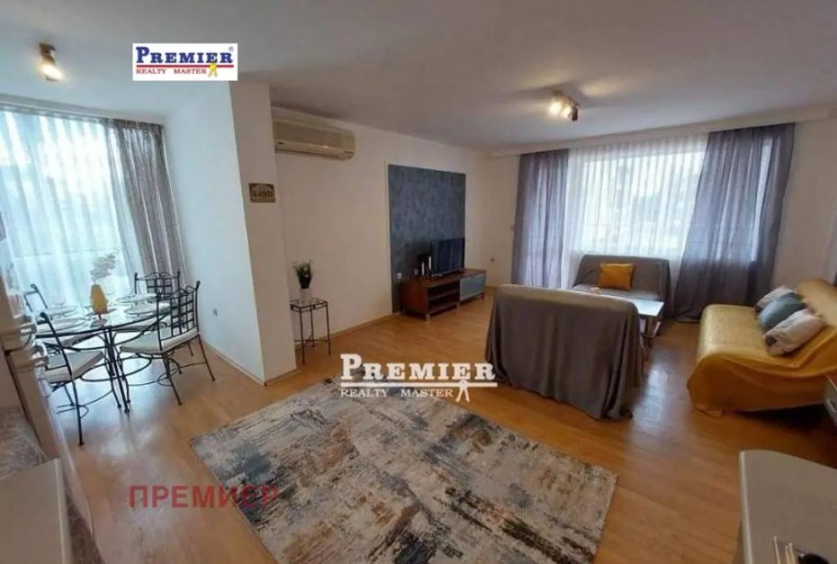 Продажба на двустаен апартамент в Сарафово. Апартаментът е 107 кв.м, разположен на 3 етаж. Възможно е да се направи тристаен. Състои се от: антре, просторна дневна с трапезария и кухненски бокс, баня с тоалетна, една спалня, голяма тераса. Апартаментът се продава с мебели и уреди, както е на снимката. Той се намира в уютен затворен комплекс в кв. Сарафово. Комплексът разполага с два басейна, паркинг, озеленена територия и целогодишна охрана и поддръжка. Наблизо има автобусна спирка, ресторант и магазин за хранителни стоки и др. Идеален за целогодишно живеене! Такса поддръжка 600 евро годишно.