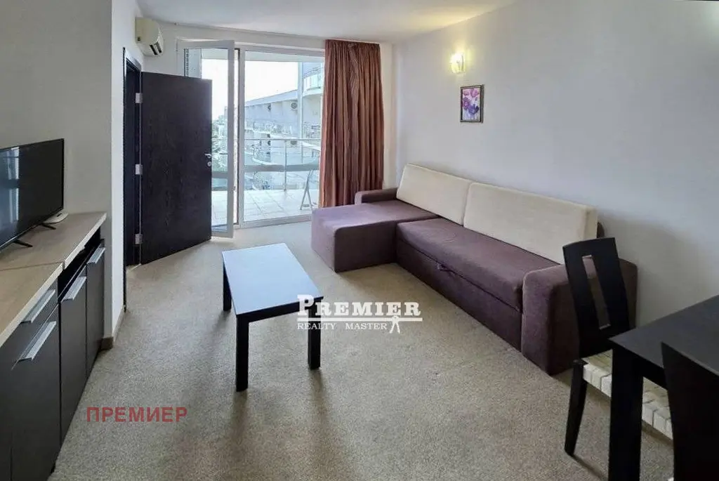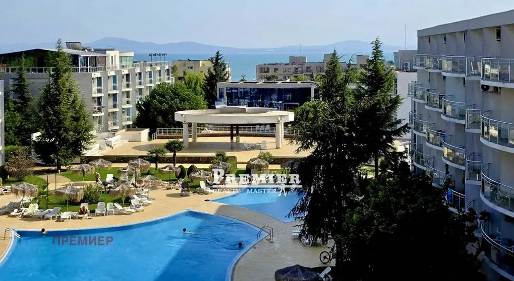 Двустаен апартамент в квартал Сарафово, Бургас. Панорамни прозорци с гледка към морето и басейна от двете стаи. Имотът е разположен на четвъртия етаж от общо пет, с обща площ 58 кв. м. Апартаментът се състои от дневна с кухня и трапезария, спалня, баня с тоалетна и панорамна тераса с излаз от двете стаи. Продава се с мебели и оборудване, напълно готов за живеене или отдаване под наем. Има отделни партиди за ток и вода. Комплексът разполага с просторен ресторант с две големи тераси, два външни басейна и детски басейн, бар до басейна, конферентна зала, спа център с басейн, сауни и парни бани, салон за красота, масажи и детски център.