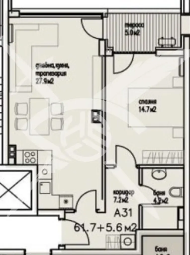 Компания Х представя на Вашето внимание двустаен апартамент в Сарафово.