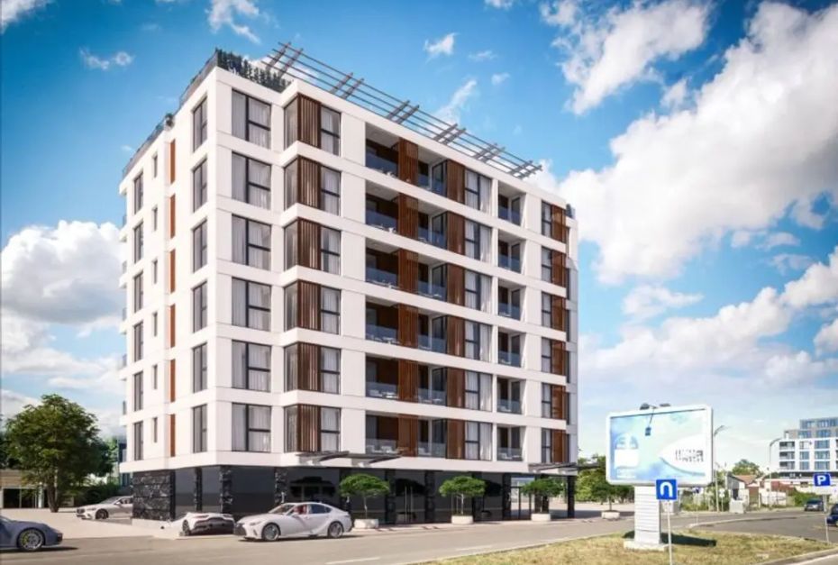 Предлаганият имот е двустаен апартамент с площ от 63 кв.м, разположен в град Бургас, в квартал Славейков, на бул. Янко Комитов. Жилището е част от новострояща се сграда с осем етажа и партерни търговски площи.