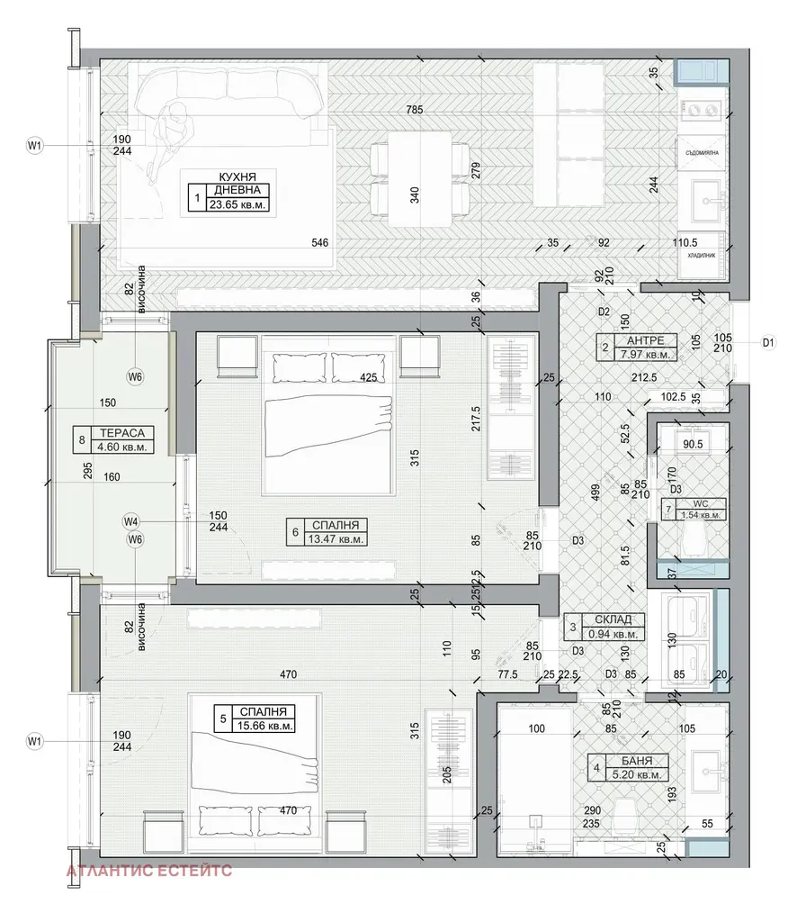- Просторна дневна с кухненски бокс
