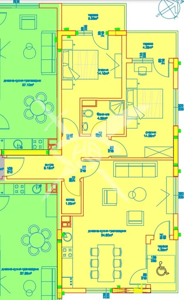 РАЗПРЕДЕЛЕНИЕ: Жилището разполага с площ 121,50 кв.м., състои се от хол с кухня, спалня и баня с тоалетна.