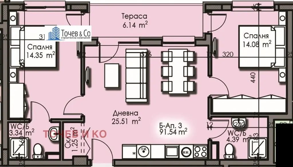 Квадратурите на апартаментите са между 31,21 кв.м и 178,10 кв.м. АПАРТАМЕНТ Б-3.