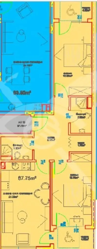 РАЗПРЕДЕЛЕНИЕ: Жилището разполага с площ 103,64 кв.м., състои се от хол с кухня, спалня и баня с тоалетна.