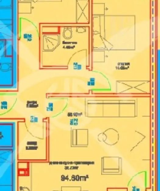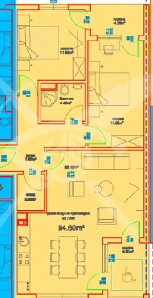 РАЗПРЕДЕЛЕНИЕ: Жилището разполага с площ 107,62 кв.м., състои се от хол с кухня, 2 спални и баня с тоалетна.
