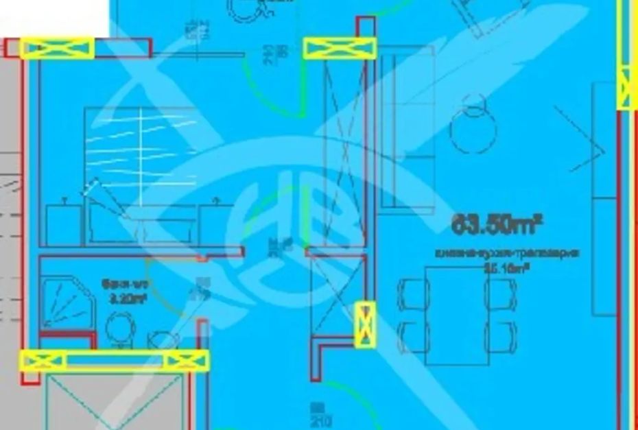 РАЗПРЕДЕЛЕНИЕ: Жилището разполага с площ 74,54 кв.м., състои се от хол с кухня, спалня и баня с тоалетна.