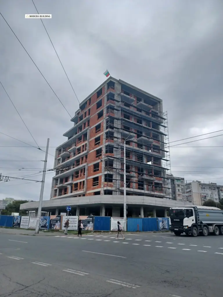 Сградата се намира на ъгъла до терминал ЮГ с изложение ИЗТОК - ЮГ, с иновативна архитектура, висок клас на изпълнение, целящ дългосрочна и безпроблемна експлоатация на всеки имот с ниски енергийни разходи. Едно от предимствата с които се гордеем е топло и шумоизолацията която правим в нашите сгради, а имено топлоизолация по тавани и под на всеки апартамент, както и топло и шумоизолация межди всеки апартамент. Сградата се състои от партерен етаж и девет жилищни етажа с по четири апартамента на етаж, два двустайни и два тристайни. За повече информация и налични свободни имоти, можете да разгледате сайта https://moderabuilding.com