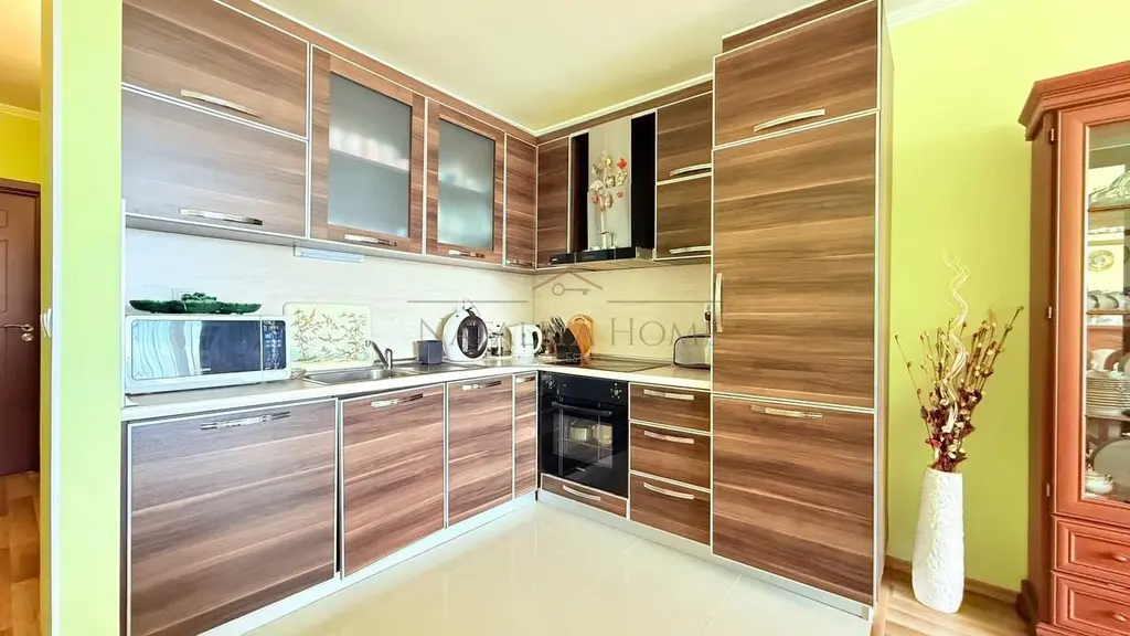 Жилището е напълно обзаведено и оборудвано с висок клас мебели и електроуреди.