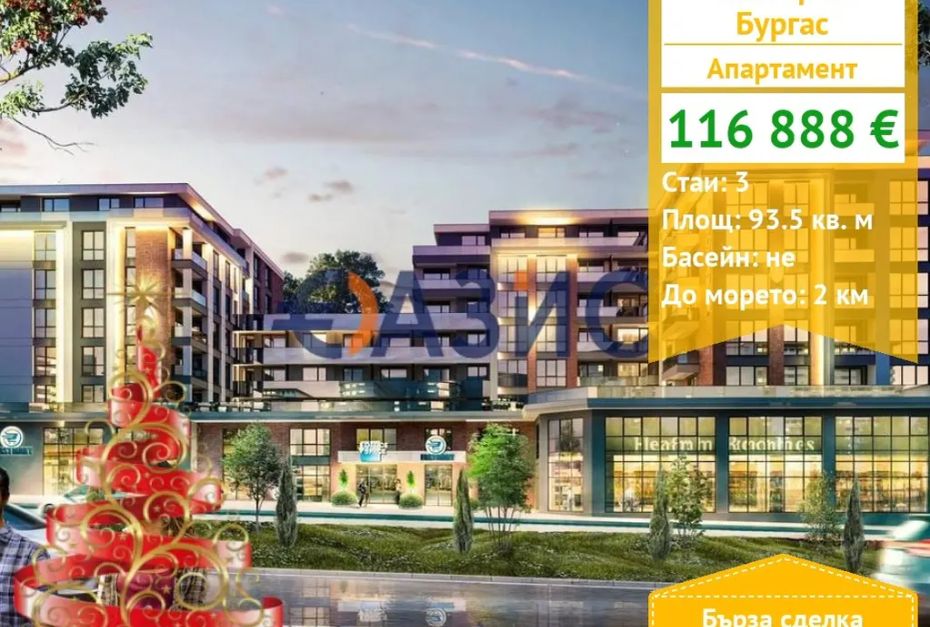Предлагаме апартамент с 2 спални на 3 етаж в нов жилищен комплекс 'Панорама' на квартал 'Изгрев' в град Бургас.