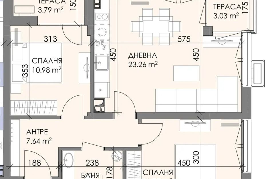 Можем да Ви предложим и други двустайни или тристайни апартаменти с различни параметри, като етажност, квадратура, разположение и изложение.