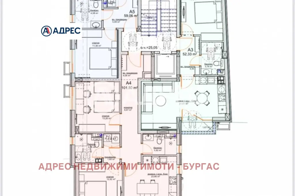 Малка, бутикова сграда в центъра на квартал Сарафово.Апартаменти с прекрасно разпределение!Апартамен 4 е с площ от 124.04 кв.м,