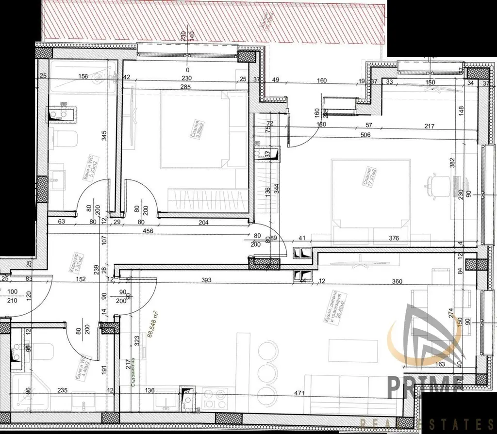 При строителството са използвани се качествени материали. Модерна визия и отлични общи части. Апартаментите се предлагат в степен на завършеност на тапа . Довършителни работи могат да се възложат срещу допълнително заплащане.