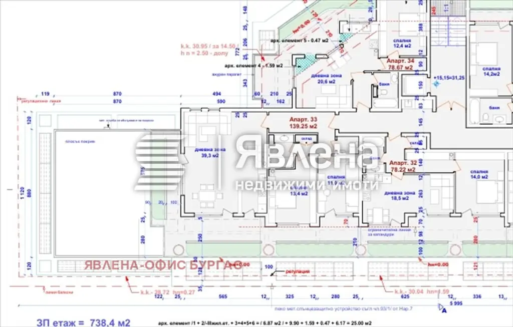 Агенция Явлена продава голям панорамен апартамент с прекрасна лична огромна тераса. Площ застроена на апартамента 139,25 кв.м., площ на терасата 76,56 кв.м., общи части 19,72 кв.м., идеални части от земята 19,72 кв.м. Разпределение на жилището - коридор, много голяма всекидневна с кухненска зона, основна спалня, баня с тоалетна, втора спалня, втори санитарен възел и още две тераси, освен панорамната. Етаж панорамен - шесто ниво на сградата, последен етаж. Сградата е на две минути пешеходно разстояние от центъра на Бургас. Вече с Акт 14. Апартаментът /33/ се издава на тапа по БДС, с луксозно завършени общи части, хидравличен асансьор, двуслойна петкамерна дограма и други екстри. Възможно е разсрочено плащане. Съдействаме за банково кредитиране. За повече информация - брокер Даниела Йорданова. ID 154788 (yavlenaCOM/154788).