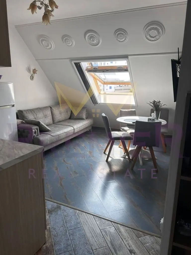 Апартаментът разполага с 60 кв.м жилищна площ, разположен на 7 етаж (последен) в тухлена сграда с асансьор. Имотът е напълно завършен и обзаведен с качествени мебели.