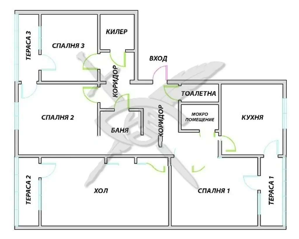 РАЗПРЕДЕЛЕНИЕ: Продава се многостаен апартамент с площ 111 кв.м., с отлично разпределение: 3 спални, голям хол, отделна кухня, баня и отделна тоалетна, мокро помещение, голям килер, както и 3 остъклени тераси с 5-камерна дограма. Жилището разполага с удобни 4 коридора, които осигуряват функционално разделение на пространството. Имотът е подходящ за семейства или за инвестиция, като предлага множество възможности за модерно обновяване.
