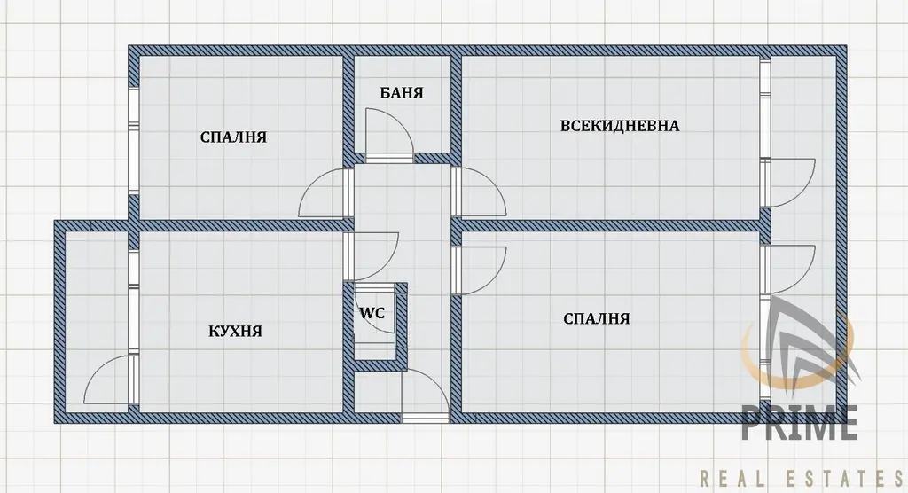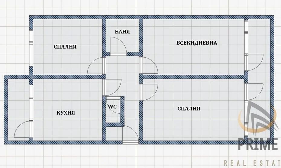 РАЗПРЕДЕЛЕНИЕ: Коридор, отделна кухня, две спални, отделен хол, баня, отделна тоалетна и две тераси.