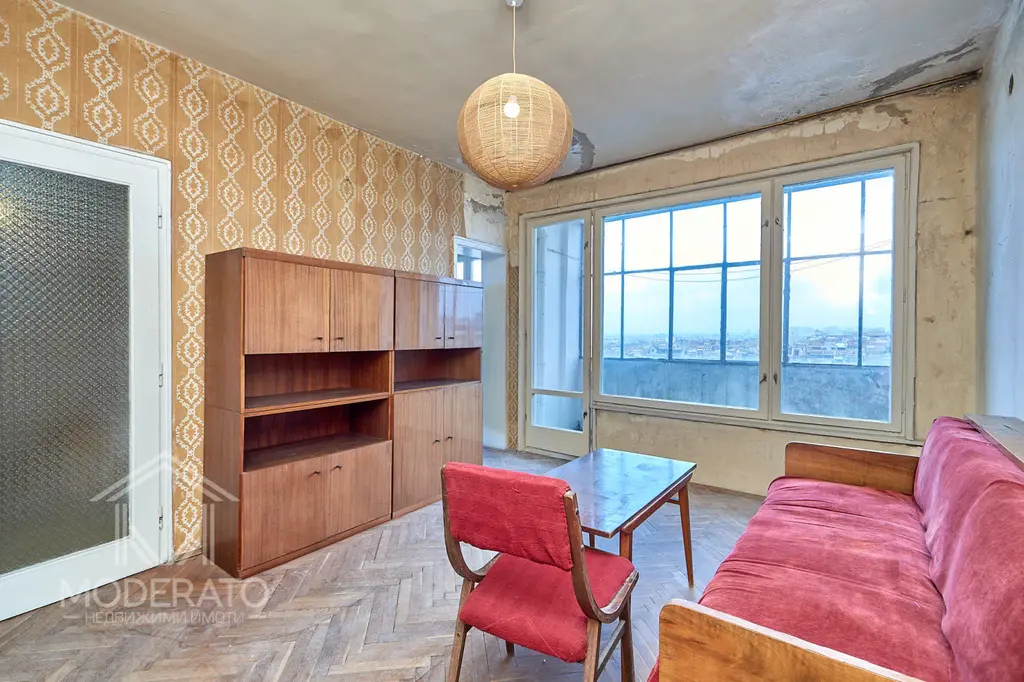 Сградата е монолитна тухлена от 1974 г., с асансьор и поддържани общи части. Имотът се нуждае от ремонт, но предлага високи тавани и три изложени страни.