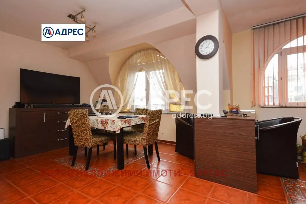 Жилището представлява просторен мезонет на две нива, подходящ както за голямо семейство, така и за хора, търсещи простор в централна градска локация. Сградата е с отлично местоположение, осигуряващо спокойствие, удобство и лесен достъп до всички основни точки в Бургас.
