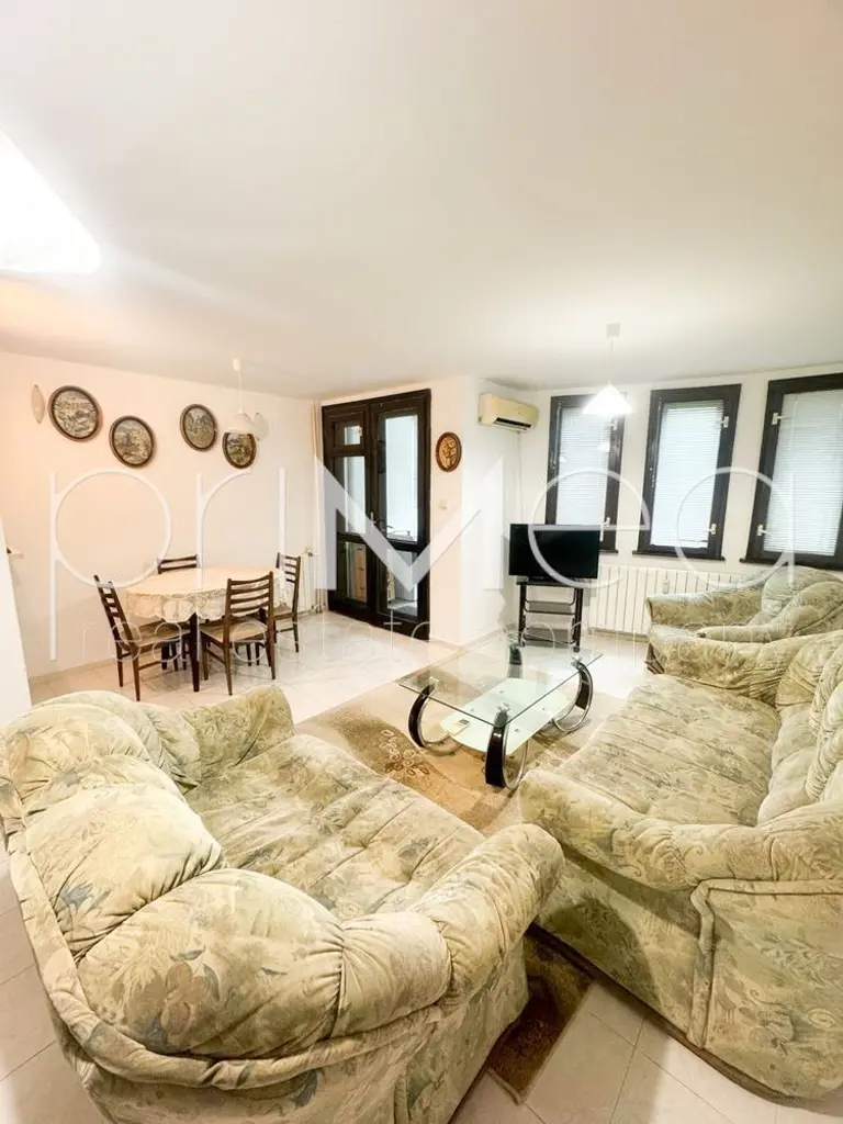 Апартамент с площ от 150 кв.м. на две нива.Първо ниво - всекидневна с кухненска част, тераса с хубава гледка на Ю/И, спалня, баня с тоалетна.
